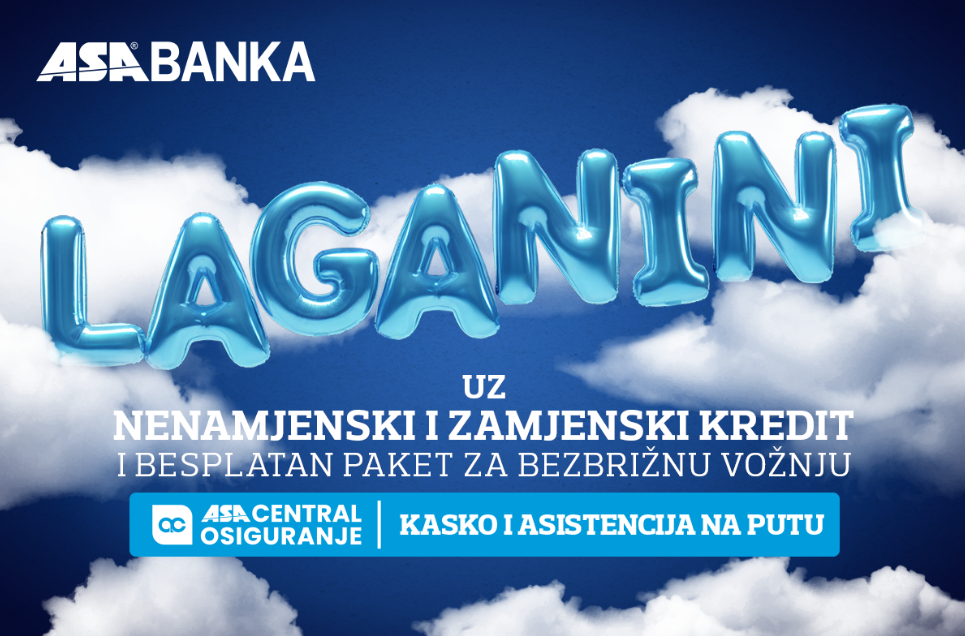 Za više informacija o ponudi „Laganini“ posjetite najbližu poslovnicu ASA Banke ili web stranicu www.asabanka.ba