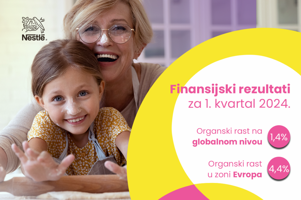 Kompanija Nestlé objavila je financijske rezultate za prva tri mjeseca 2024. godine. Organski rast iznosio je 1,4% s povećanjem cijena od 3,4% te realnim internim rastom (RIG) od – 2,0%.