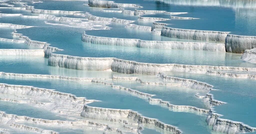 Za mnoge, Pamukkale su poznate po svojim prekrasnim snježnobijelim kaskadnim bazenima, nastalim interakcijom kisika i termalne vode koji su savršen spoj historije i prirode. Vjerujući da termalne vode imaju ljekovita svojstva, svake godine ljudi iz cijelog svijeta hrle na ovu očaravajuću destinaciju, opčinjeni krajolicima koji oduzimaju dah i potencijalom za podmlađivanje. Važno je napomenuti da je, zbog svoje osjetljive građe, većina bazena zaštićena. Ipak, posjetitelji mogu slobodno šetati nekim dijelovima koji sadrže male bazene u obliku terasa. Kako bi ih sačuvali, gosti, prije ulaska, moraju izuti cipele i čarape.