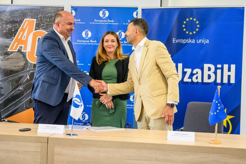 Direktor JP Autoceste FBiH Denis Lasić i direktorica Ureda Evropske banke za obnovu i razvoj (EBRD) u BiH Manuela Naessl potpisali su danas u Sarajevu ugovor o grantu Evropske unije u vrijednosti 3,5 miliona eura za nadzor radova na dionici Putnikovo Brdo – Medakovo.
