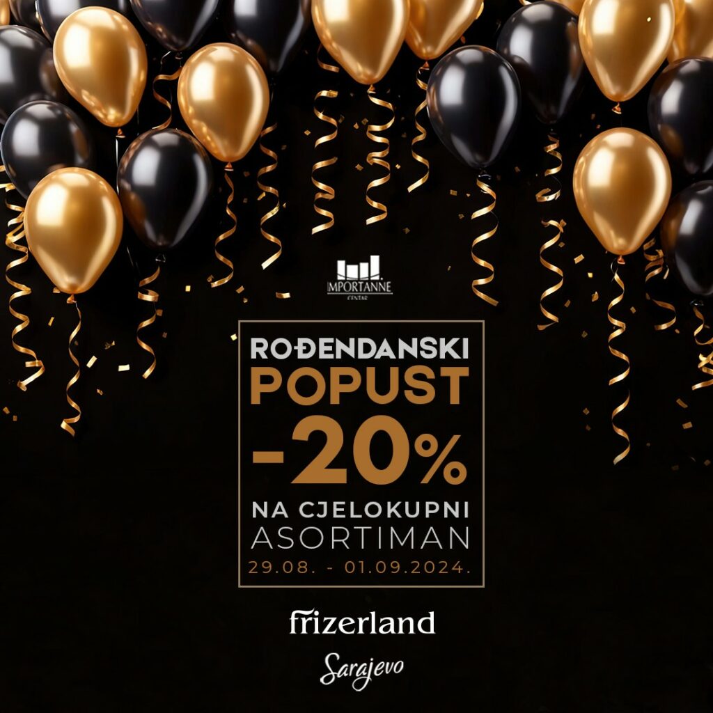 Od 29. avgusta do 1. septembra 2024., iskoristite rođendansko sniženje od 20% na cijeli asortiman proizvoda u ovoj poslovnici.