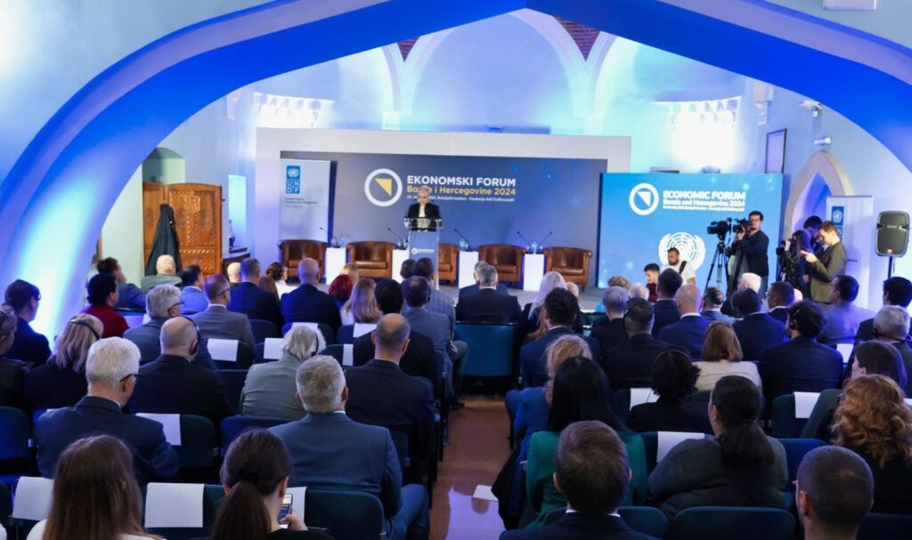 Marx.ba U Bošnjačkom institutu – Fondacija “Adil Zulfikarpašić” u Sarajevu otvoreno je deveto izdanje Ekonomskog foruma Bosne i Hercegovine, čiji je organizator Ekonomski fakultet Univerziteta u Sarajevu (EFSA). Ovogodišnji Forum je posvećen planu rasta i razvoja Zapadnog Balkana na putu ka Evropskoj uniji, uz primjenu “Pakta za budućnost”, koji se temelji na principima održivog razvoja, inkluzivnosti i regionalne saradnje, a fokusiran je na jačanje institucionalnih kapaciteta, unapređenje poslovnog okruženja te poboljšanje životnog standarda. Na Forum su stigle brojne poznate zvanice, među kojima su ugledni predstavnici međunarodnih organizacija (Ujedinjene nacije, Evropska unija), državni zvaničnici iz nekoliko zemalja regije, te stručnjaci za održivi razvoj i ekonomiju. Njihovo učešće je ključno za razmatranje glavnih tema, a to su integracija u EU, jačanje ljudskih kapaciteta, institucionalna reforma i finansiranje održivog razvoja. Među današnjim govornicama su Zlatko Lagumdžija, stalni predstavnik Bosne i Hercegovine pri UN-u, Maurizio Massari, stalni predstavnik Italije pri UN-u, Ivana Živković, zamjenica glavnog sekretara UN-a, zamjenica administratora i direktorica Regionalnog ureda za Evropu i Zajednicu nezavisnih država Programa UN-a za razvoj (UNDP), Jasmina Selimović, guvernerka Centralne banke Bosne i Hercegovine i Aurelie Valtat, šefica Sekcije za evropsku integraciju, politička i ekonomska pitanja EU u Bosni i Hercegovini. Ekonomski forum je organiziran u saradnji s UN-om, UNDP-om, Fondacijom “Društva zajedničkih vrijednosti”, Međunarodnim centrom “Nizami Ganjavi” (NGIC), Mrežom rješenja za održivi razvoj Zapadnog Balkana (WB SDSN) i Bošnjačkim institutom – Fondacijom “Adil Zulfikarpašić”. VEZANO Vanjskotrgovinska komora BiH: Ukidanje viza će olakšati poslovanje bh. kompanija na Kosovu