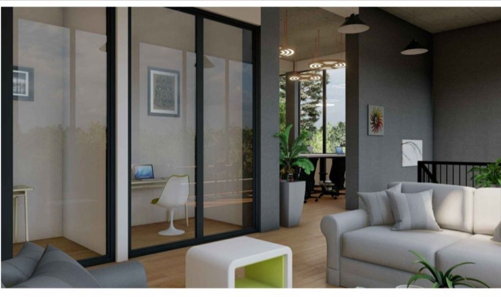 Prostorije za online sastanke ograđene su gipsanim zidovima i ulazom od staklenih kliznih vrata visine 2.8m.